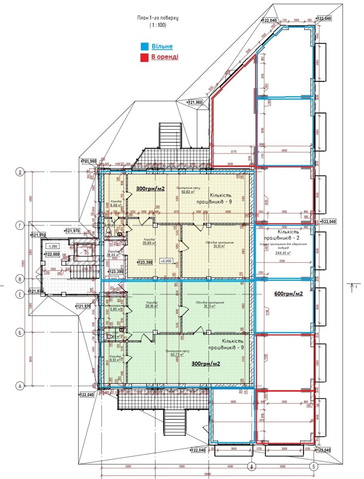 - додатково можна орендувати цокольне приміщення 260 м2