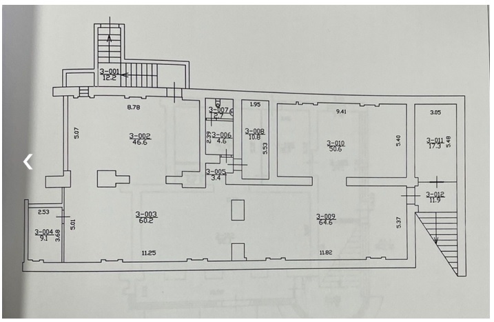 - Приміщення має 2 поверхи(перший та цокольний):