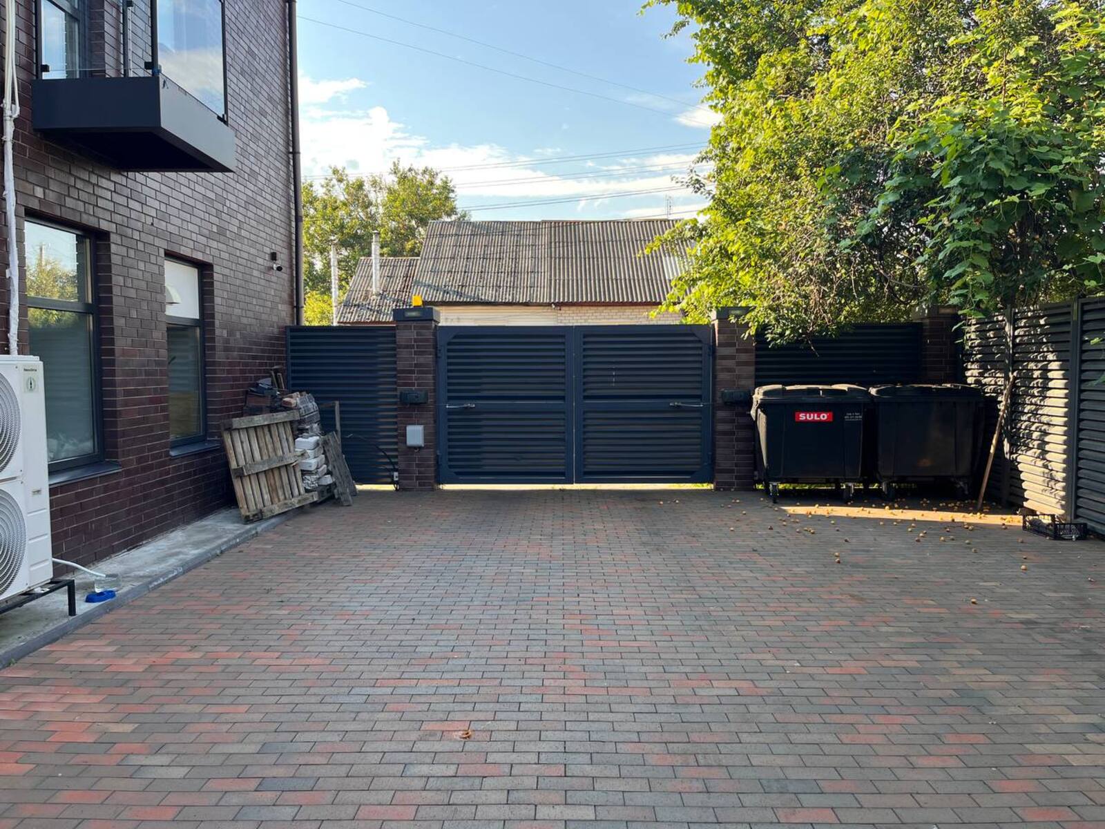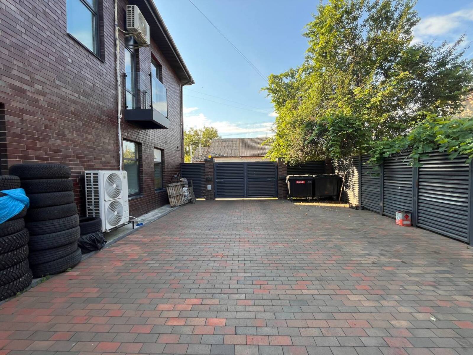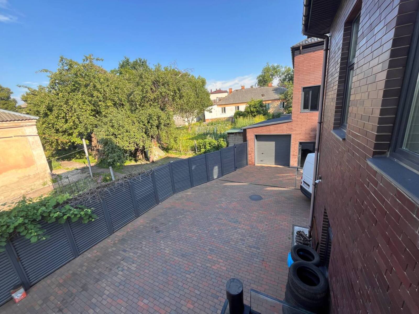 Весь двір вимощений бруківкою.