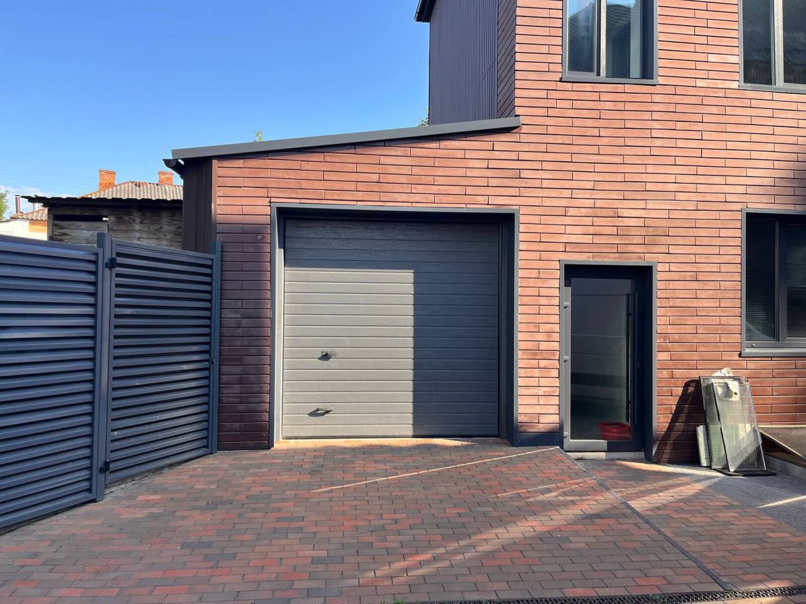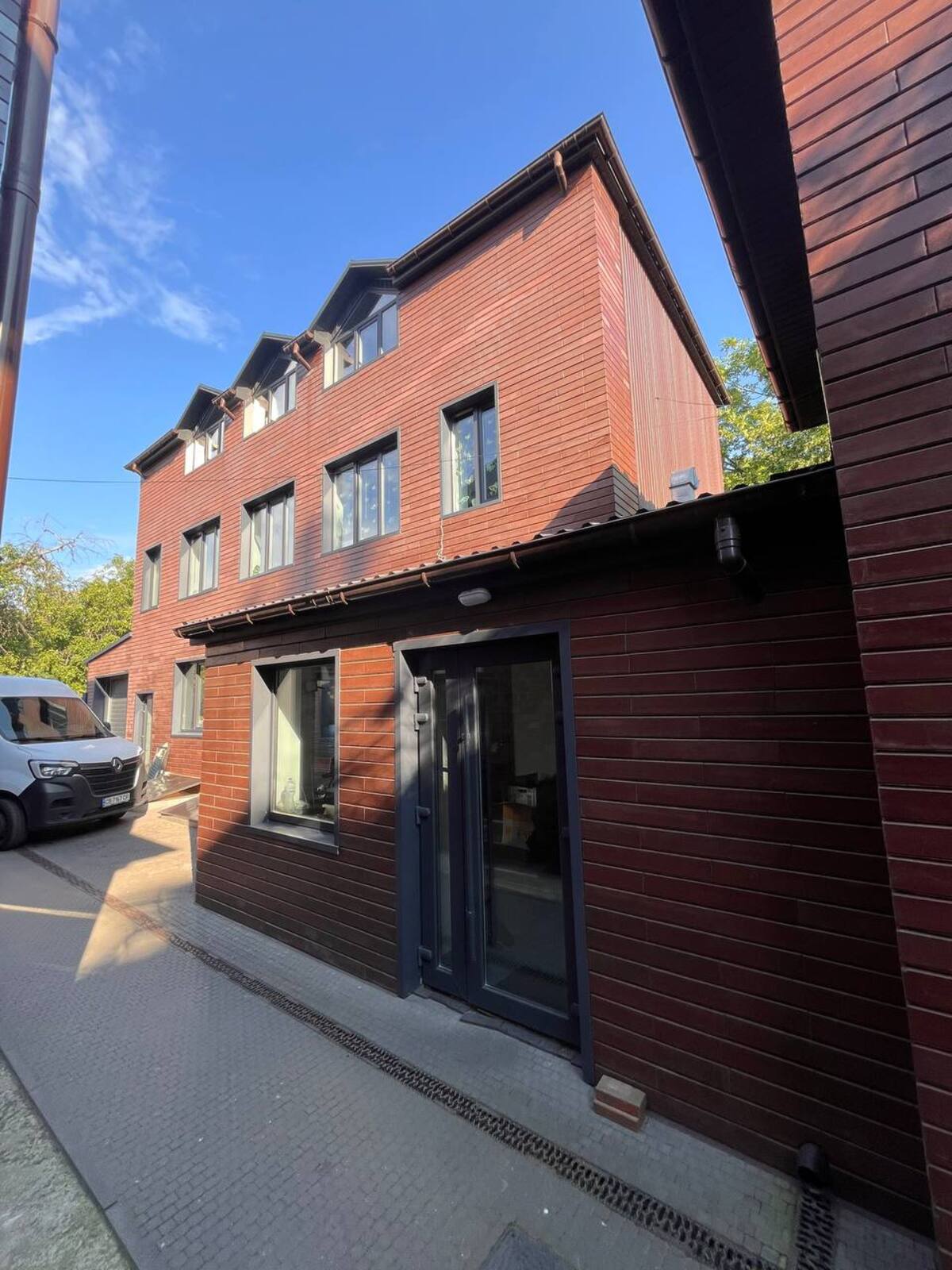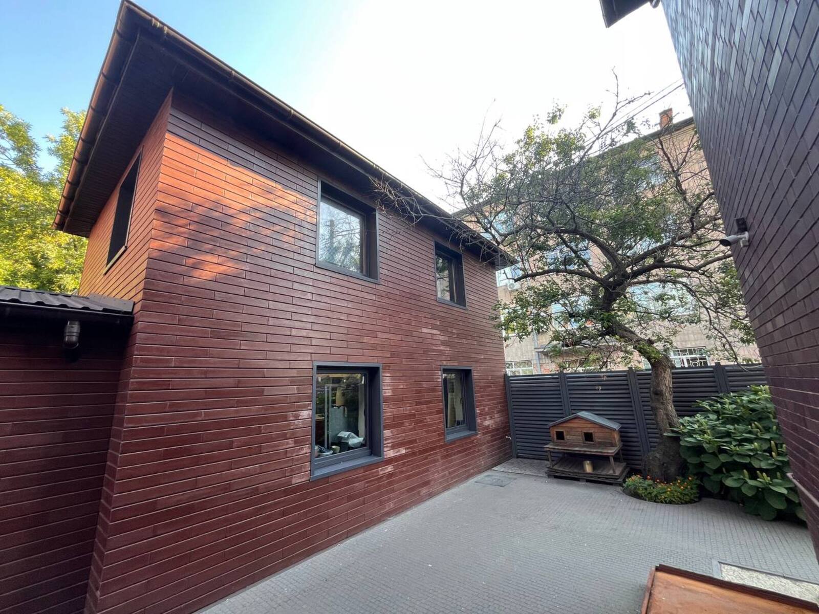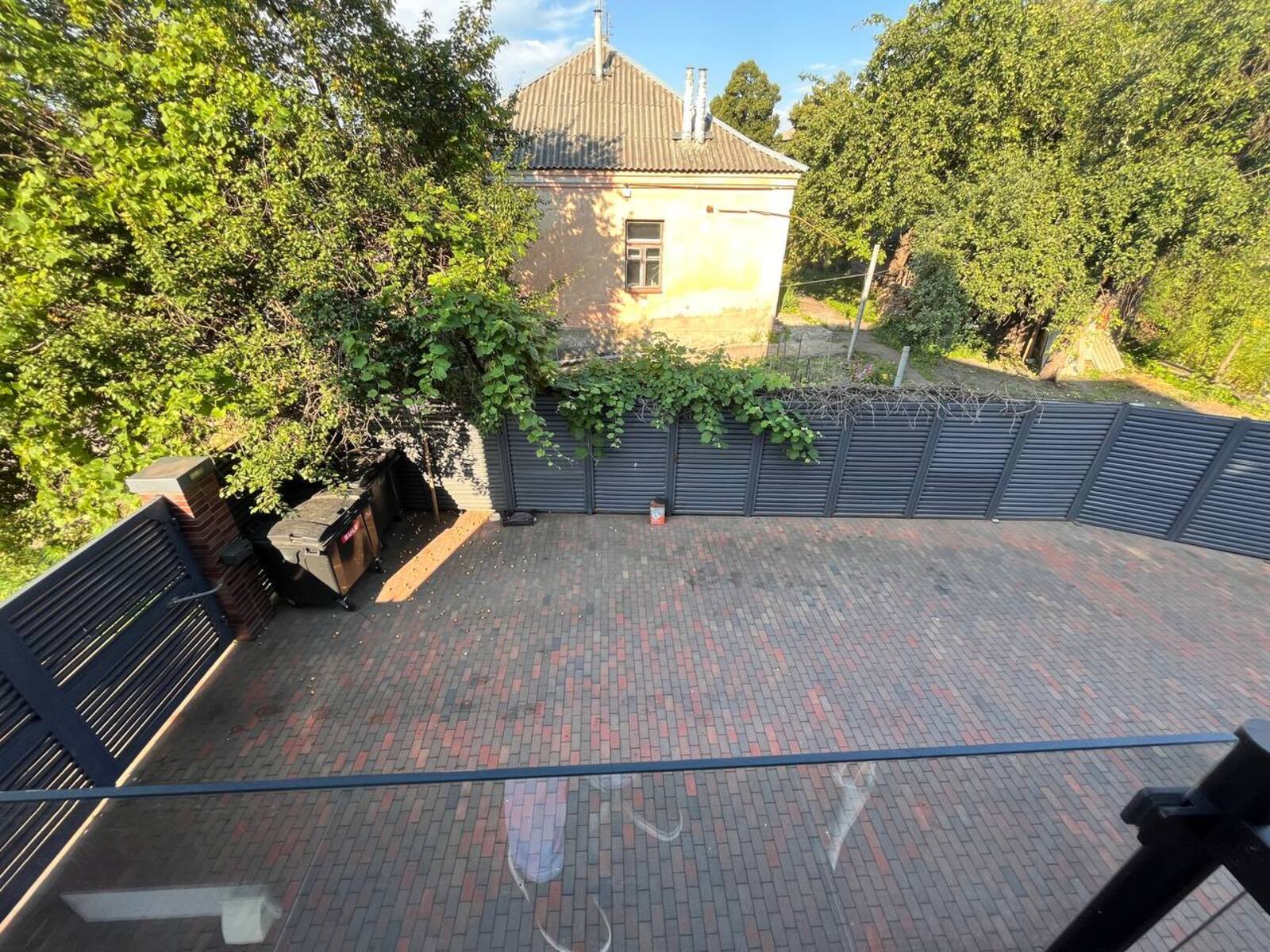 Весь двір вимощений бруківкою.