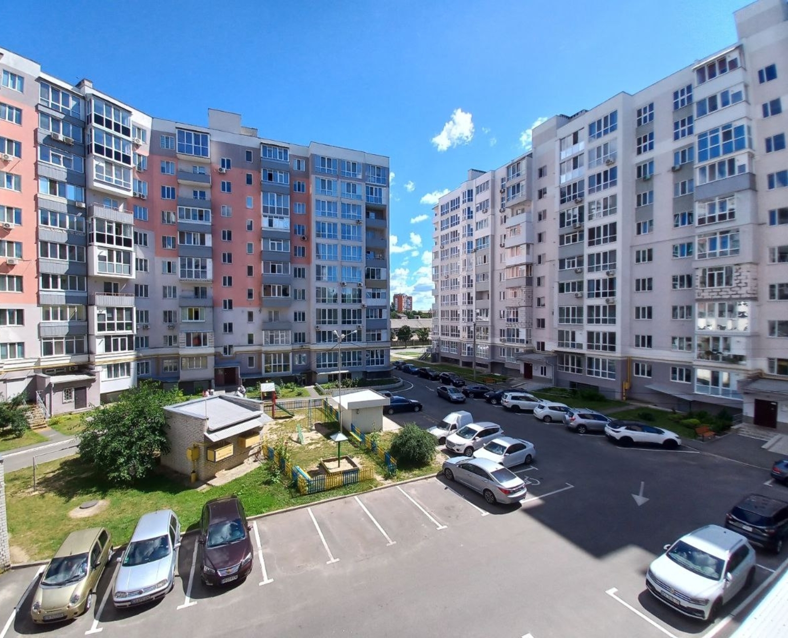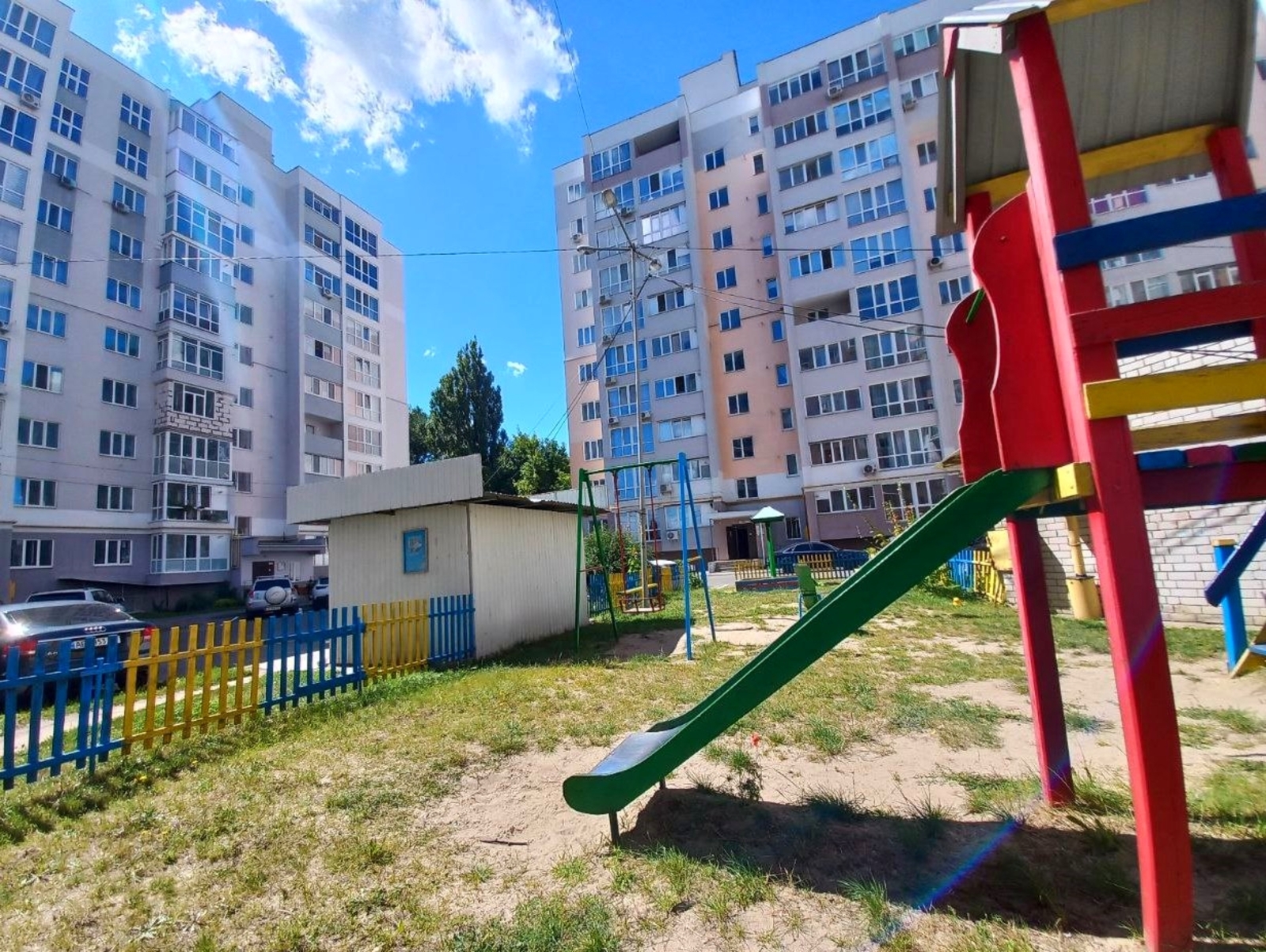 Стадіон через дорогу , дитячий майданчик у дворі