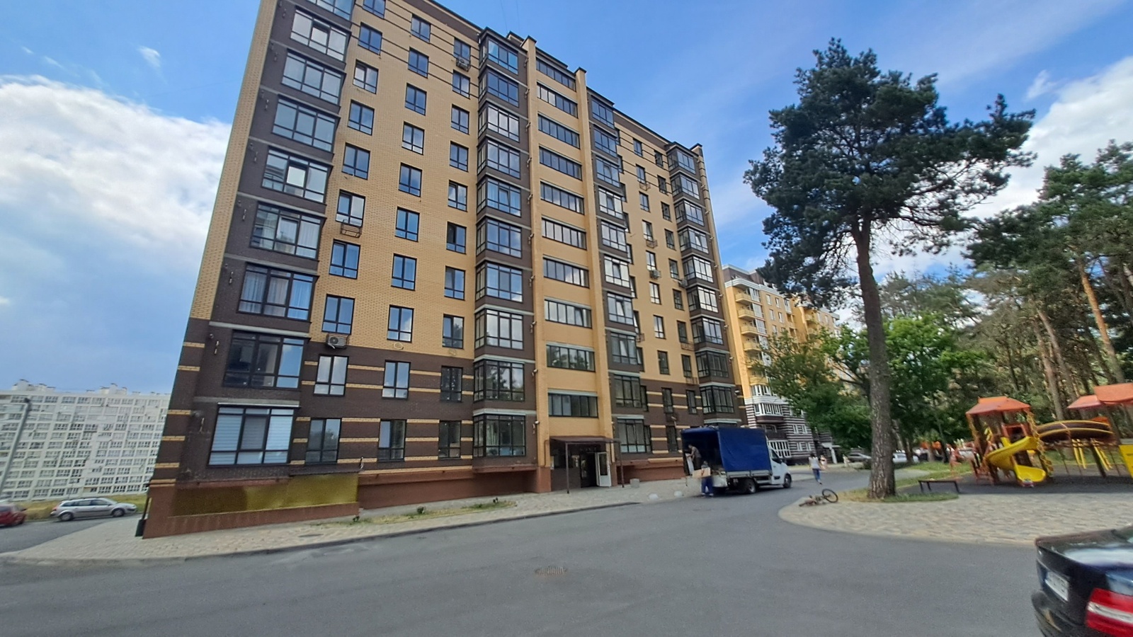 - облаштована прибудинкова територія, дитячий майданчик, парковка авто, зупинки громадського транспорту, ринок, супермаркет' АТБ', 'Велмарт ', 'Седам ', школа и дитячий садок