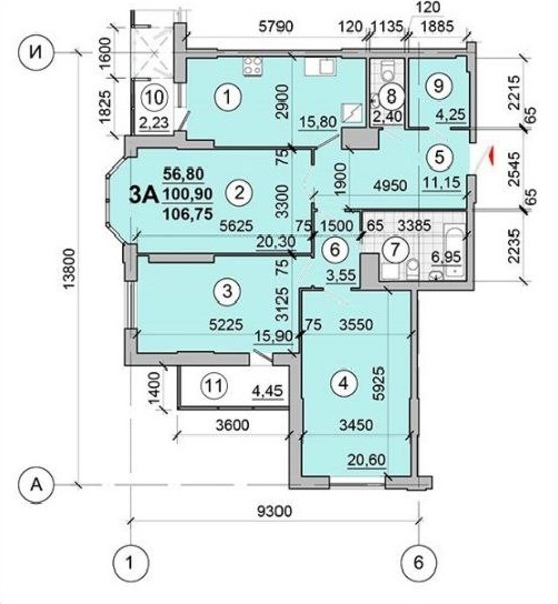 - Загальна площа: 106,7 м2.