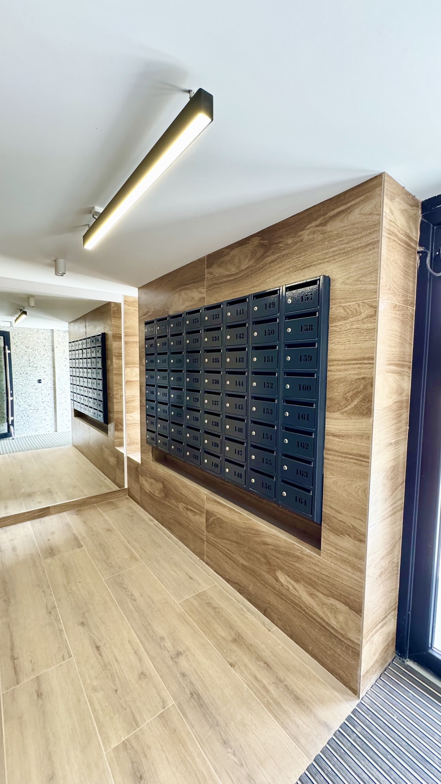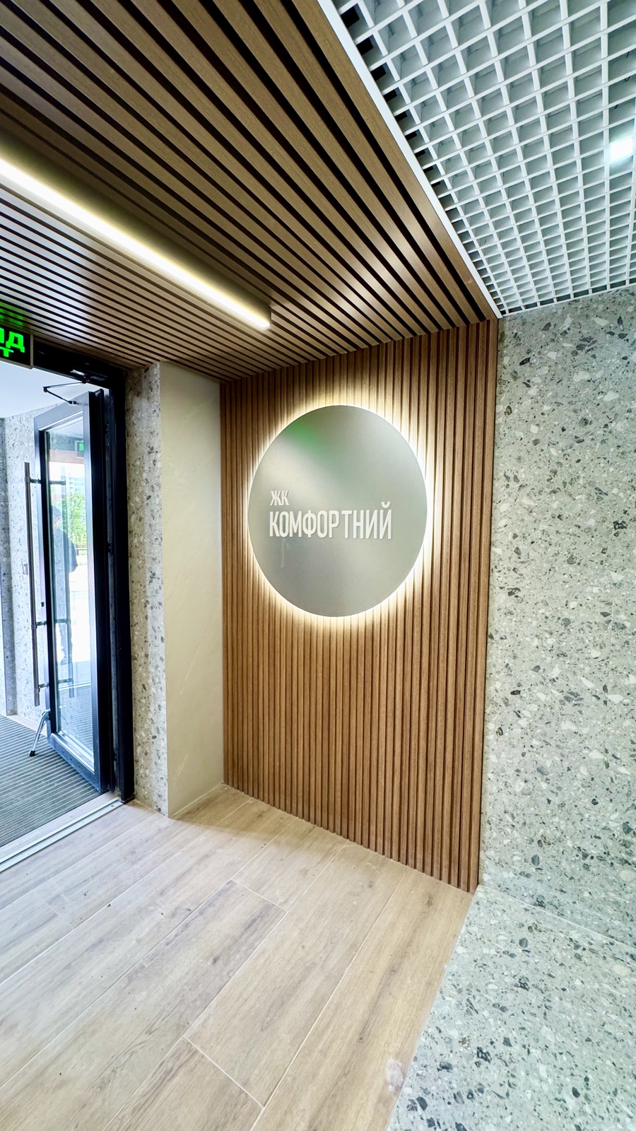 Стильна та комфортна вхідна група, підʼїзд в світлих та приємних тонах, безшумний ліфт, між поверхами є вихід на балкон ( випити ранкову каву з сусідом і поспілкуватися )