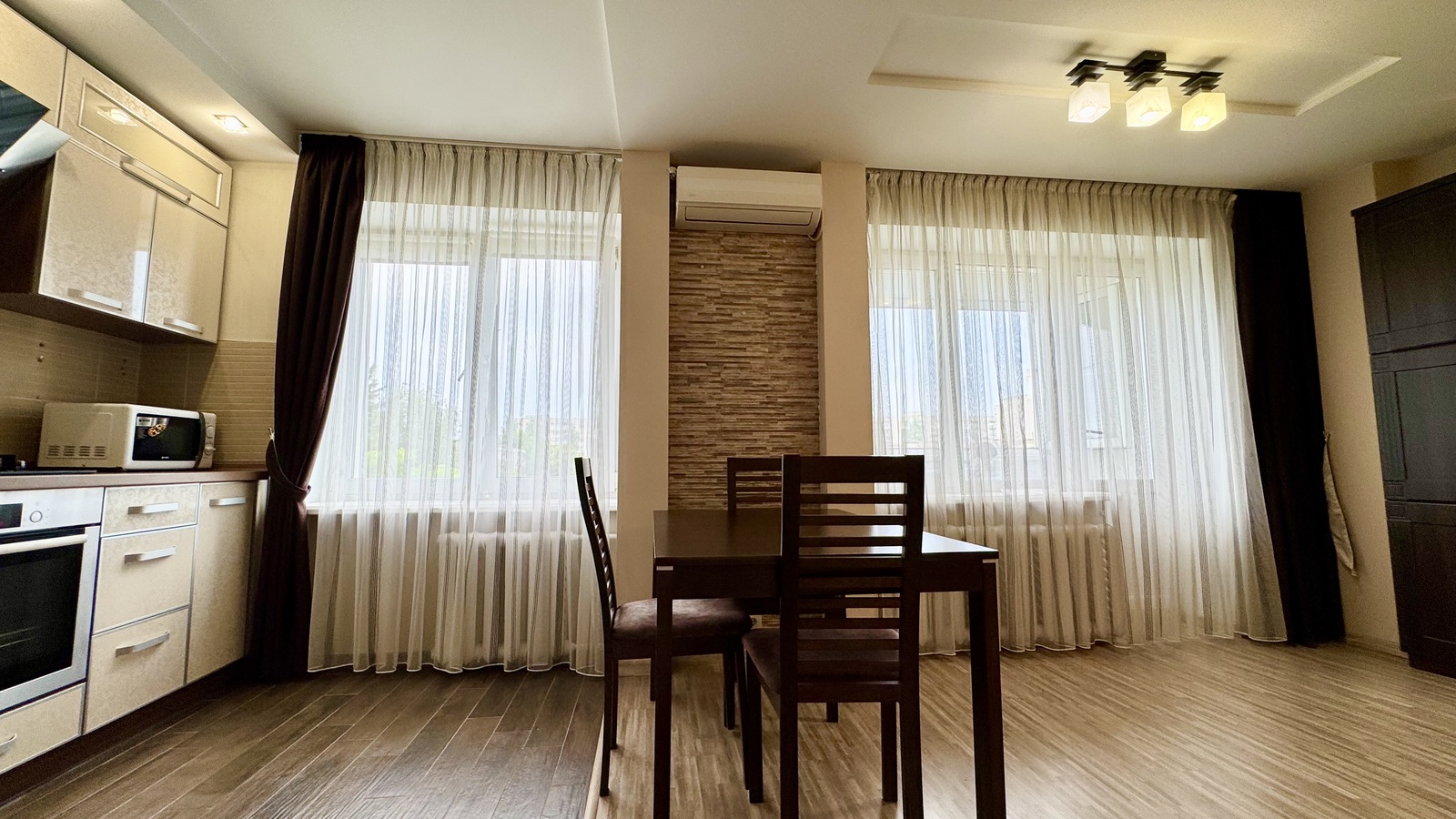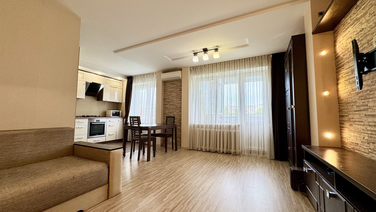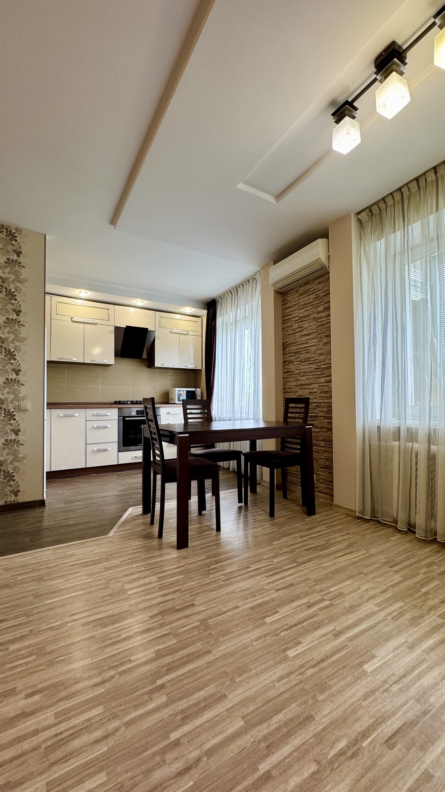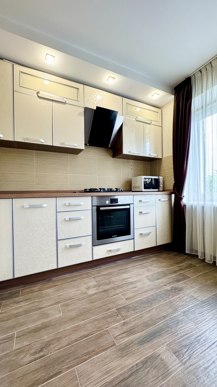 Якісні матеріали в оздобленні: ламінат, дорога плитка, кухня з кам’яною мийкою та надійною стільницею