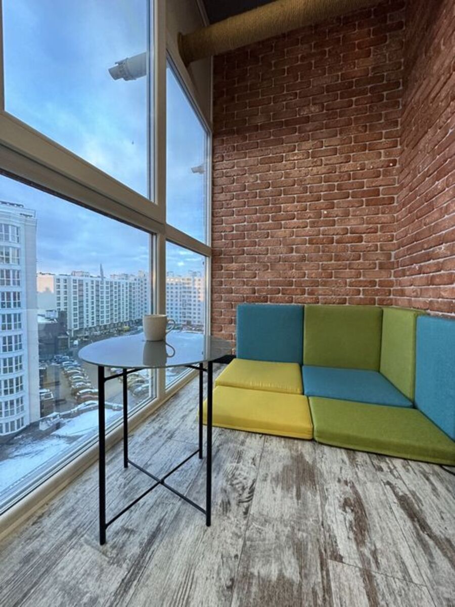Широкі тоновані вітражі, ванна кімната з теплим полом. Гардероб з сучасною розсувною системою.