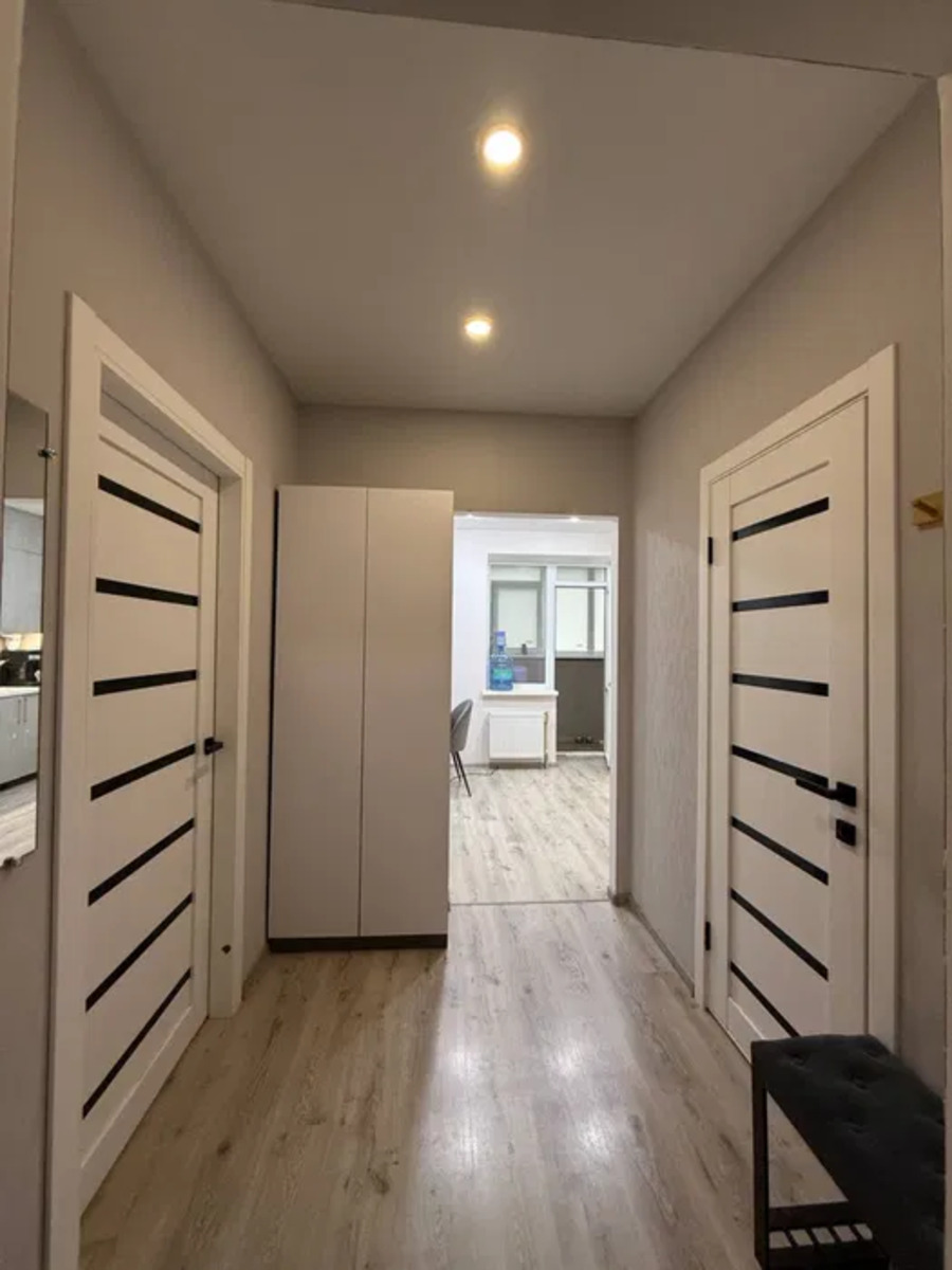 При продажу в квартирі лишається вбудована кухня, шафи в коридорі та кімнаті, кондиціонер.