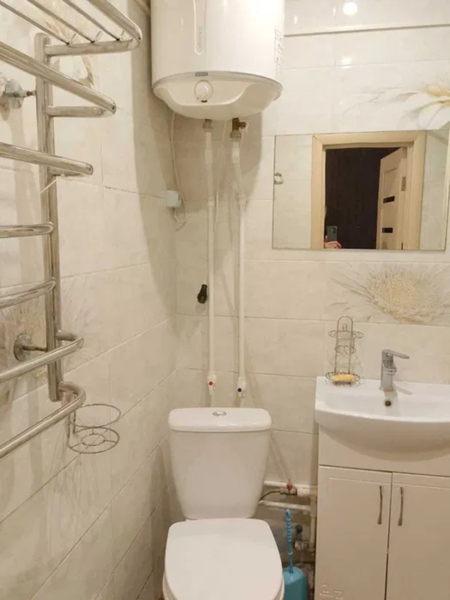 Для підігріву води встановлений бойлер, встановлені м/п вікна, натяжні стелі, на підлозі - сучасна плитка.