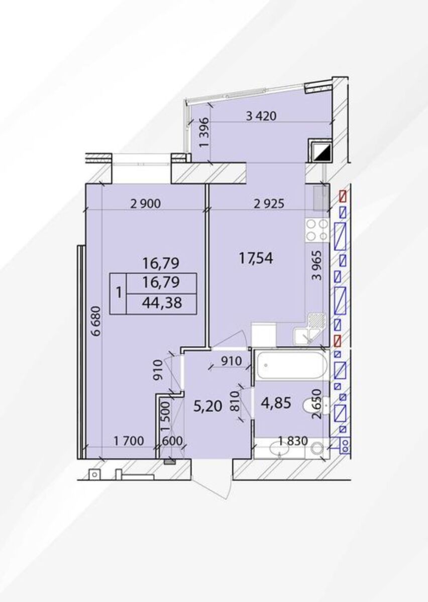 | Площа: | 43 / - / 17 м2 |