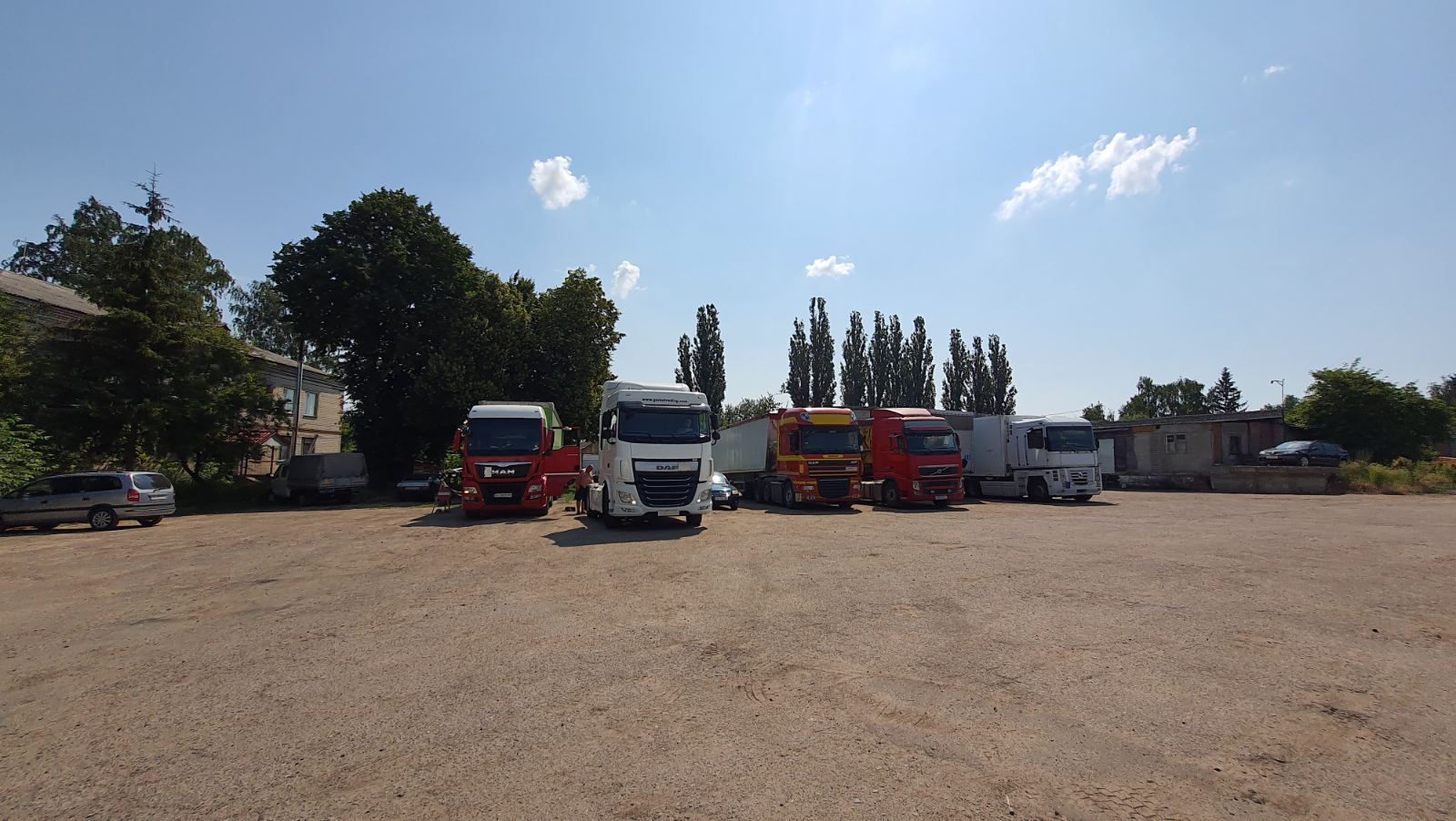 - Велика територія, багато місця для стоянки та розвороту великогабаритного транспорту.