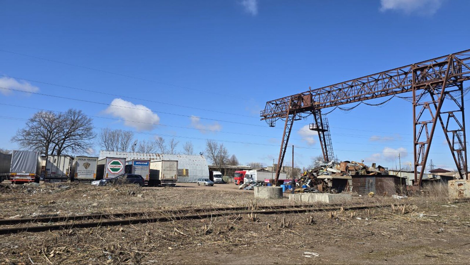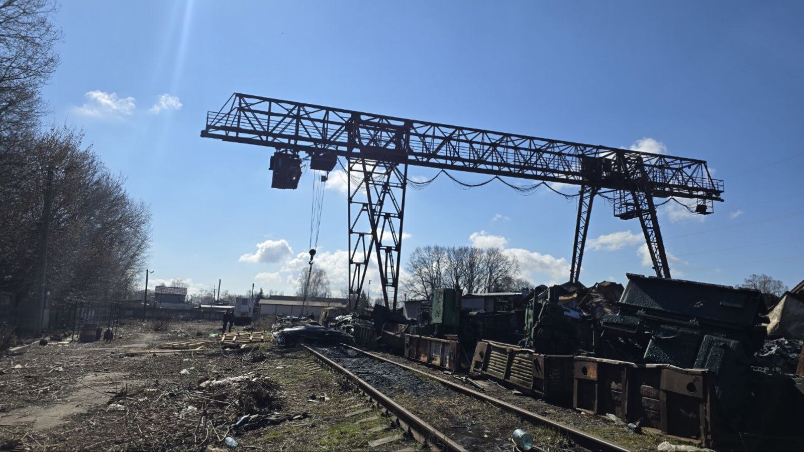 - над колією встановлений козловий кран для розгрузки/погрузки вантажу